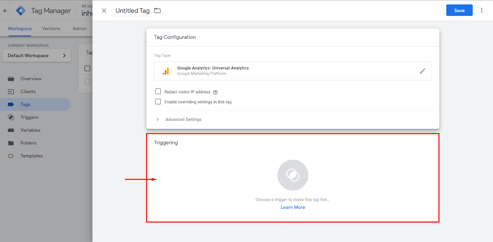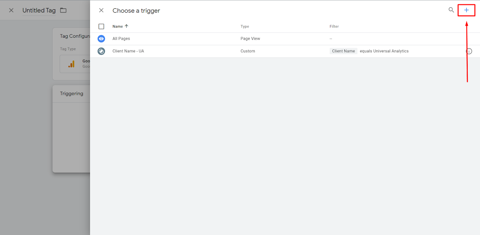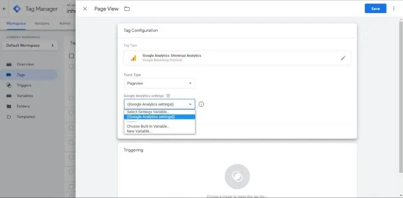 After that, a trigger must be configured, which basically is the condition when this Tag will fire.