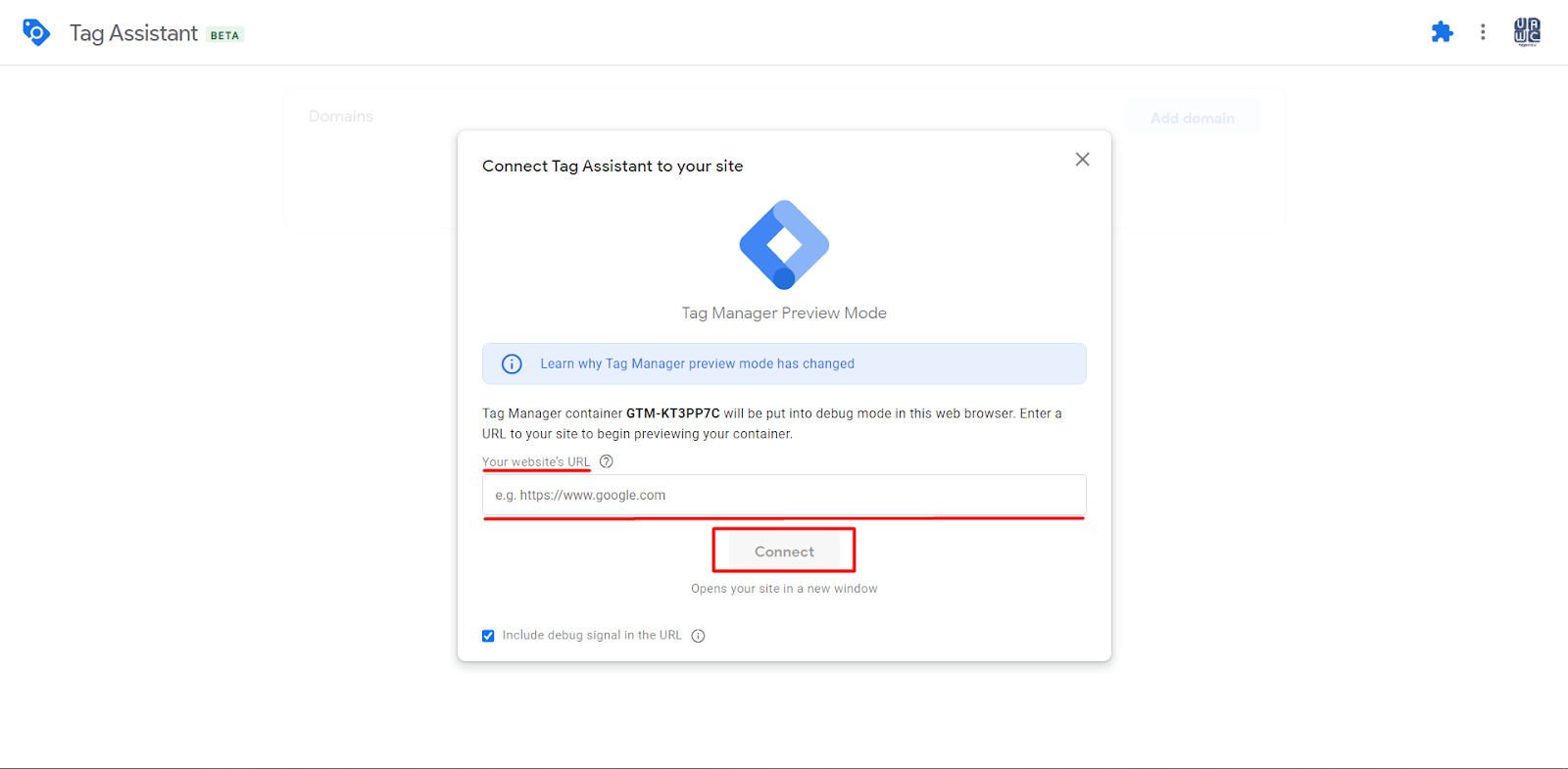 Here you can add your verified Google Cloud Platform domain which was added to the Server Container.