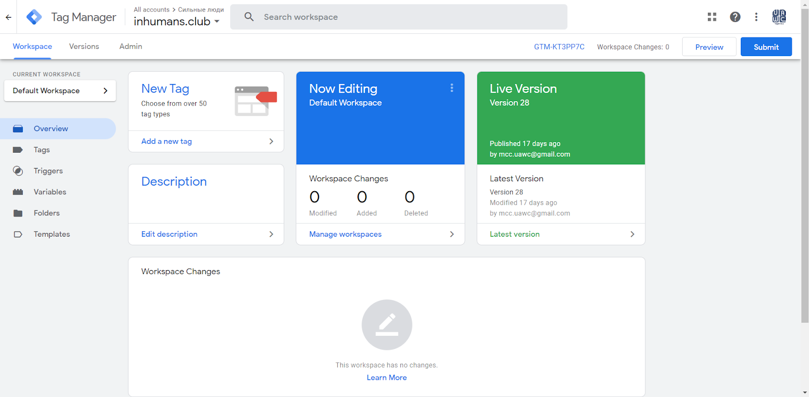 Next, a Web GTM Container must be created.