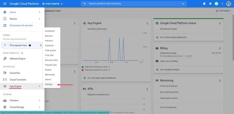 In the “App Engine” settings, you must add a new custom domain.