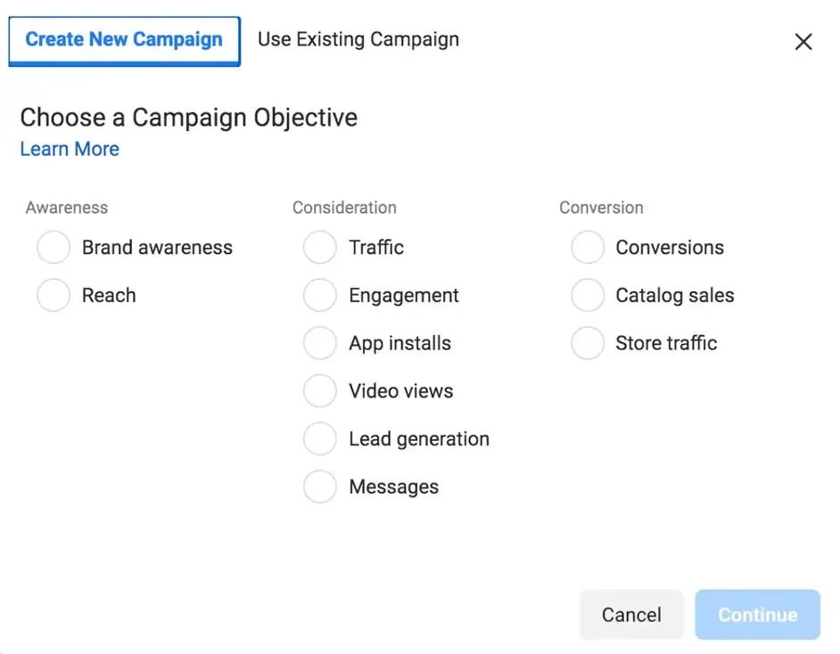 Then, you can choose a campaign objective for your Facebook Ad. This is meant to optimize your ad for the target audience.