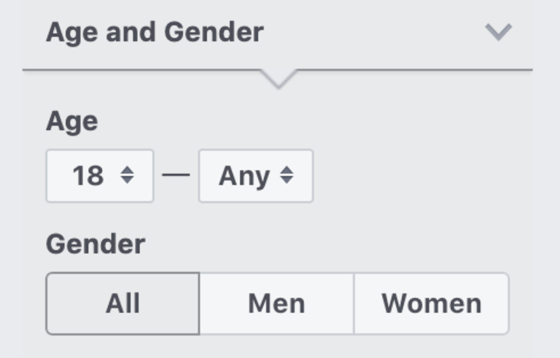 You can also filter your target audience by age range. You can choose between ages 18 and 65, depending on what your target audience is like. The gender filter gives only three available options at the moment.