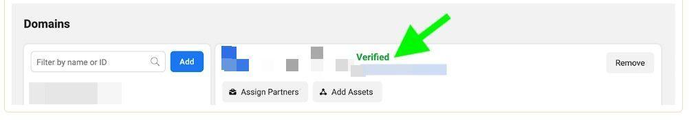 Open the domain of your business website and click Add. Then select one of the verification options from the drop-down menu and follow the next steps.