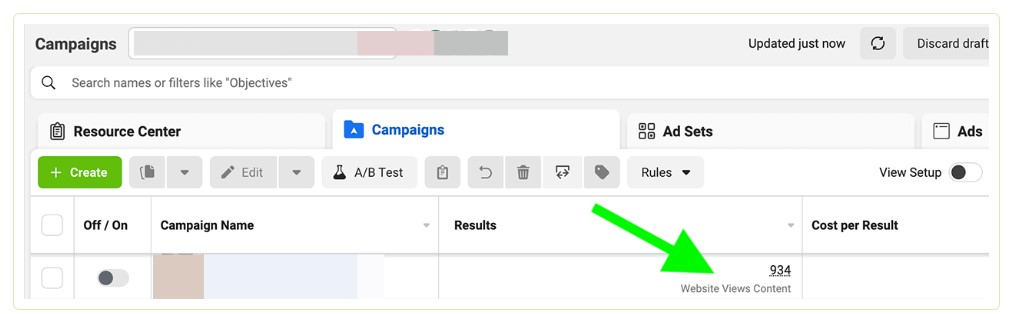 When your campaign starts running, you can monitor conversion events in Ads Manager reports. You will see the conversion events that you have optimized in the Results column and the value of each event in the Cost Per Result column.