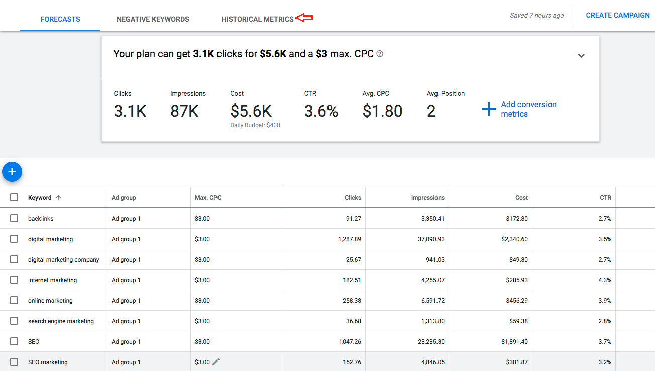 Data on the created list of keywords. Keyword planner is truly a handy tool because it shows monthly searches for keywords. With such valuable statistics, you can see which keyword ideas are paramount and will attract your target audience.