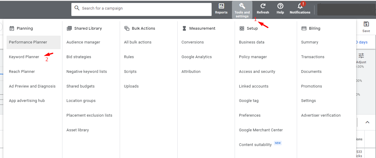 How to access Google Keyword planner
