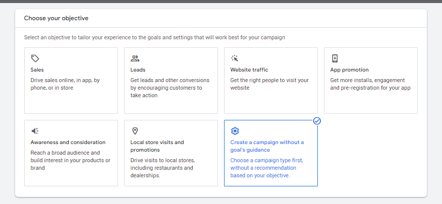 Select the objective which best fits your advertising goals, such as sales, leads or website traffic.