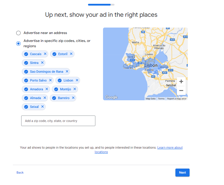 Specify the geographical area you're targeting. You can create a radius around your business or pick specific areas where you want your ads to appear.