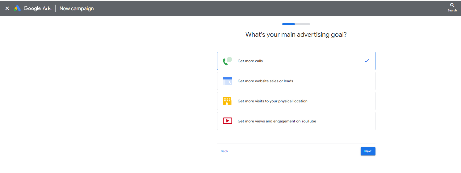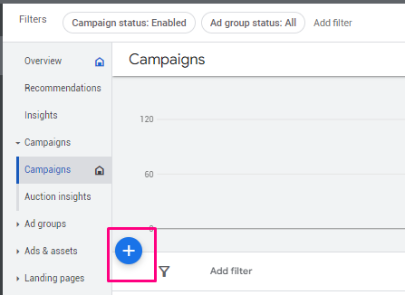 Begin by logging in to your Google Ads account and clicking on "New Campaign" or "+".