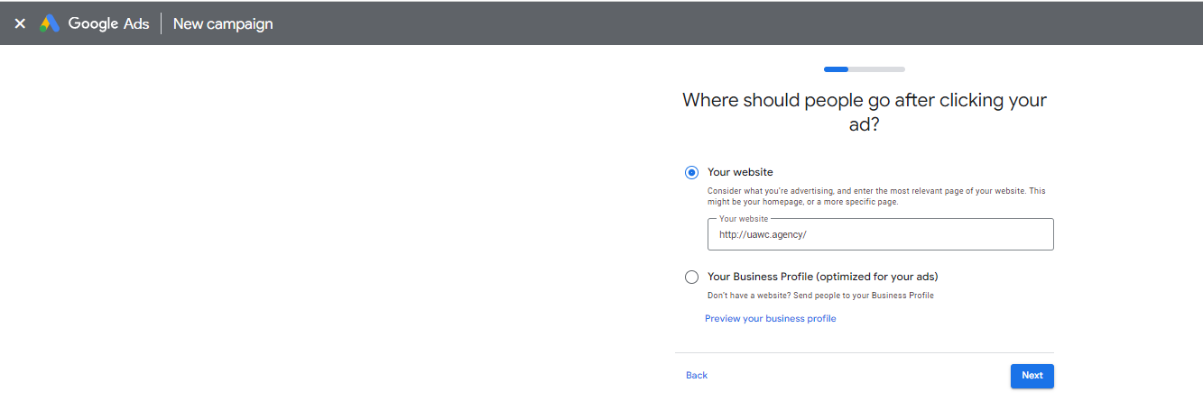 Decide whether you want to use the information from your Google Business Profile or create a new campaign from scratch.