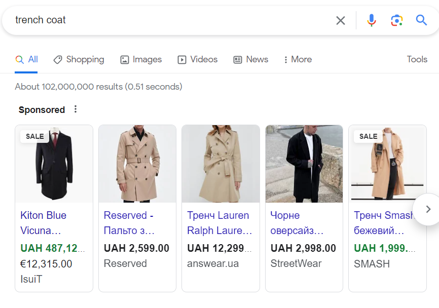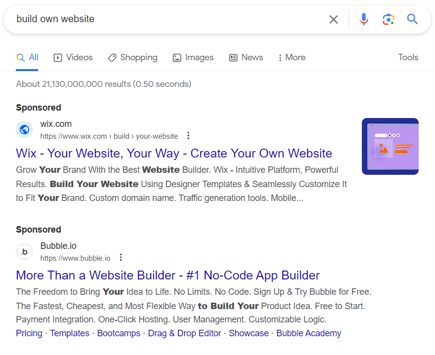 The search ad is the most popular format for Google advertisements. It displays directly above the organic search results for queries that are related to the advertiser’s goods and services; however, Google Ads can also be used to create display ads, shopping ads, YouTube ads, and more.
